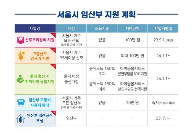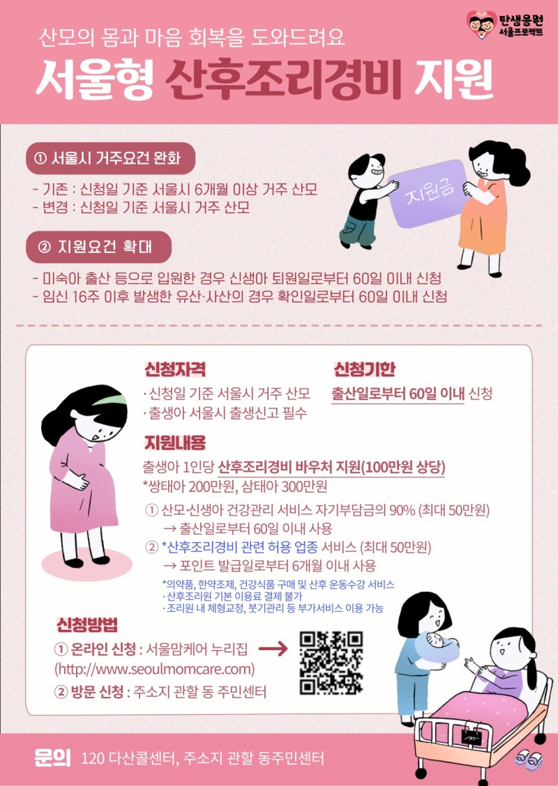 - 지원대상: 서울시 거주 산모 (신생아 서울시 출생신고 필수)
