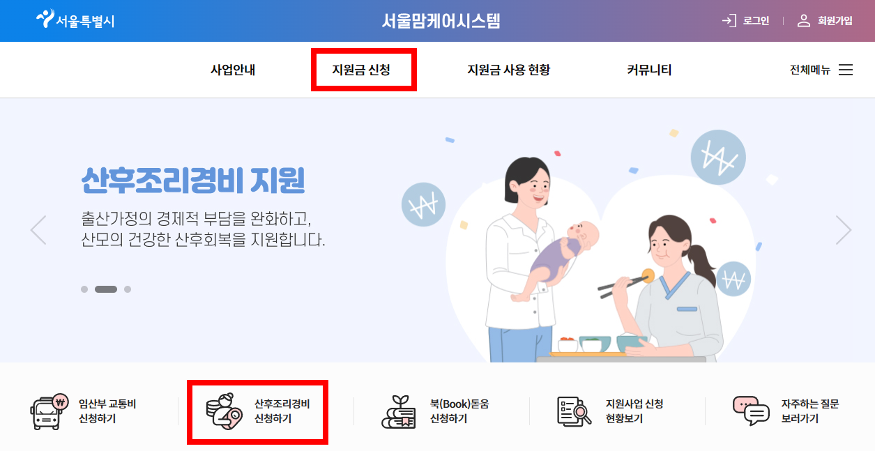서울맘케어 홈페이지나 동주민센터에서 신청 가능합니다.