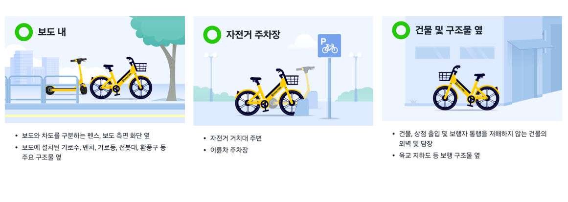 주차 시에는 안전한 모빌리티 이용 가이드를 참고하여 올바르게 주차해주세요.