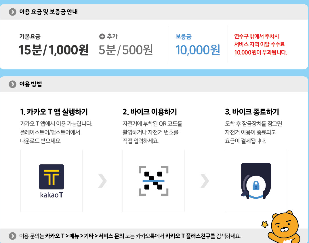 자세한 요금 정보는 카카오 T 바이크 공식 페이지에서 확인하실 수 있습니다.