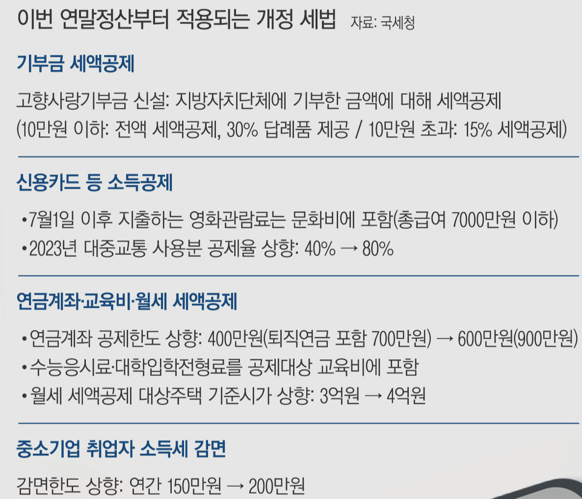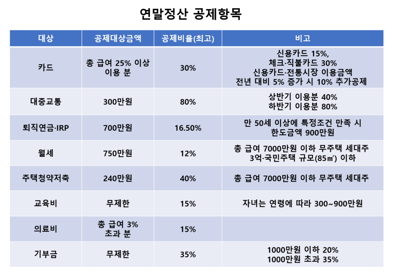 이번 연말정산 신청에서 주목해야 할 변경사항입니다: